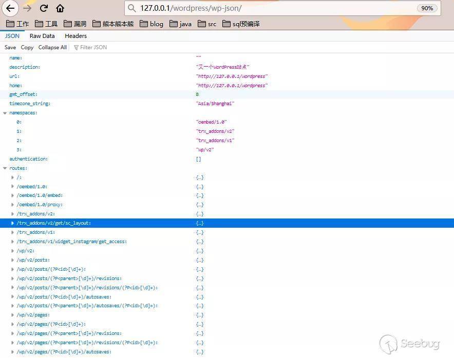 訪問127.0.0.1/wordpress/wp-json/ 見下圖