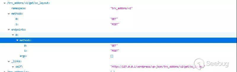 通過頁面中展示的API列表,我們可以看見/trx_addons/v2/get/sc_layout路由信息