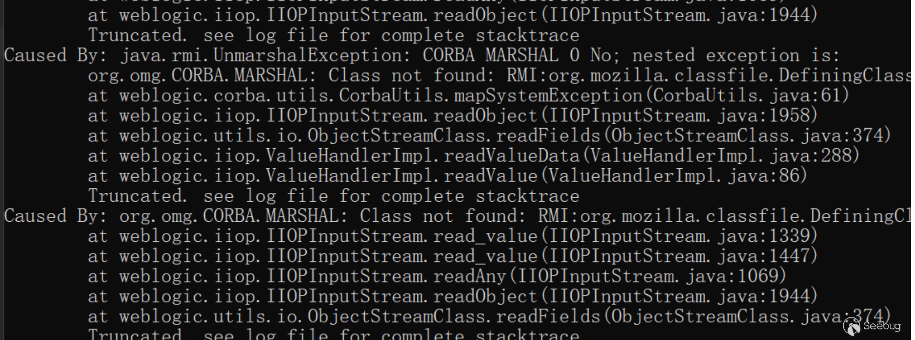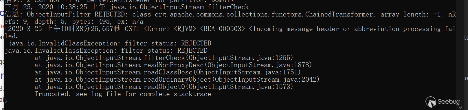- T3協議中,如果待反序列化中的任意一個類在黑名單列表,反序列化都會終止,并拋出異常