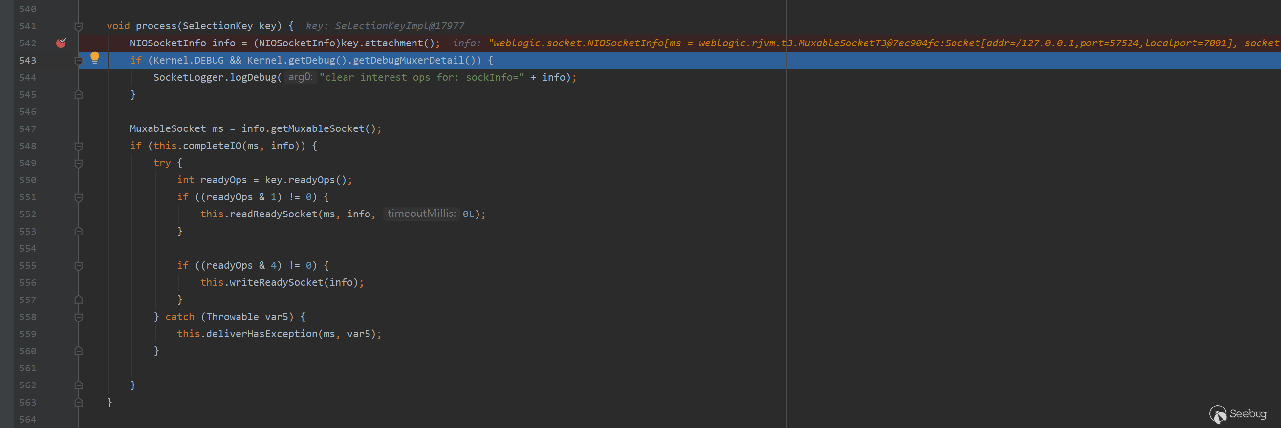 這里主要是通過Nio去處理請求,寫入請求等,與漏洞分析的關系不太大。在這里將會根據請求,調用相應的協議處理請求,例如T3,http等