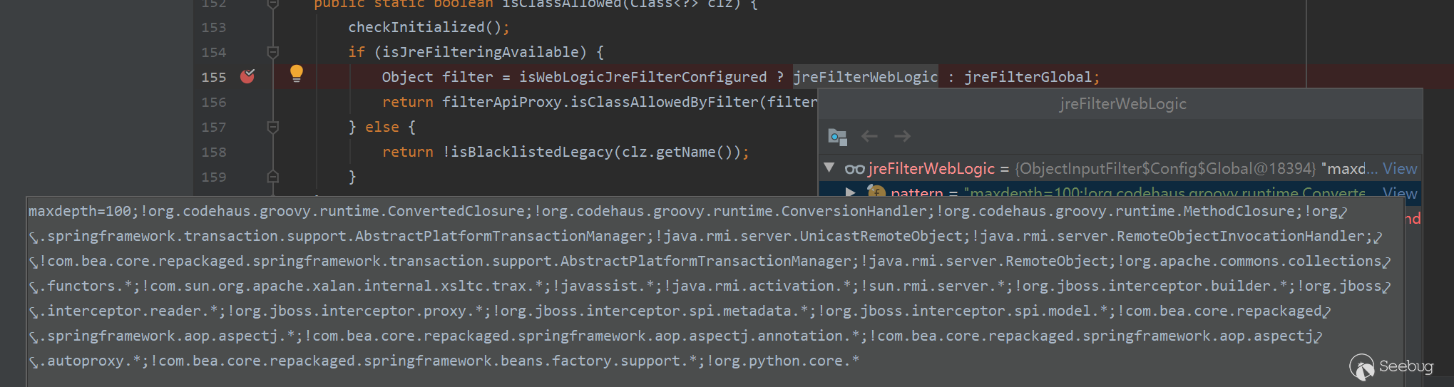 黑名單列表主要如下,相關代碼位置在wlclient.jar/weblogic/utils/io/oif/WeblogicIbjectInputFilter.class中