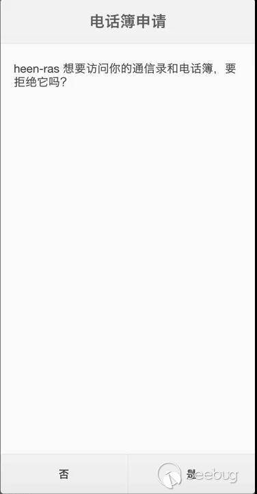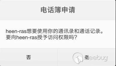Android藍牙協議還支持PBAP和MAP Server,分別用于其他設備通過藍牙訪問手機的通訊錄和短信,通常我們開車時通過藍牙撥打電話、訪問手機通訊錄就使用了PBAP協議。通過PBAP協議和MAP協議,可以無需配對,直接在手機上彈出對話框,讓用戶確認是否訪問通訊錄和短信。PBAP協議確認對話框如下圖所示: