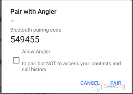 這個漏洞發生在我們經常使用的藍牙配對對話框中,如下圖是正常的藍牙配對對話框: