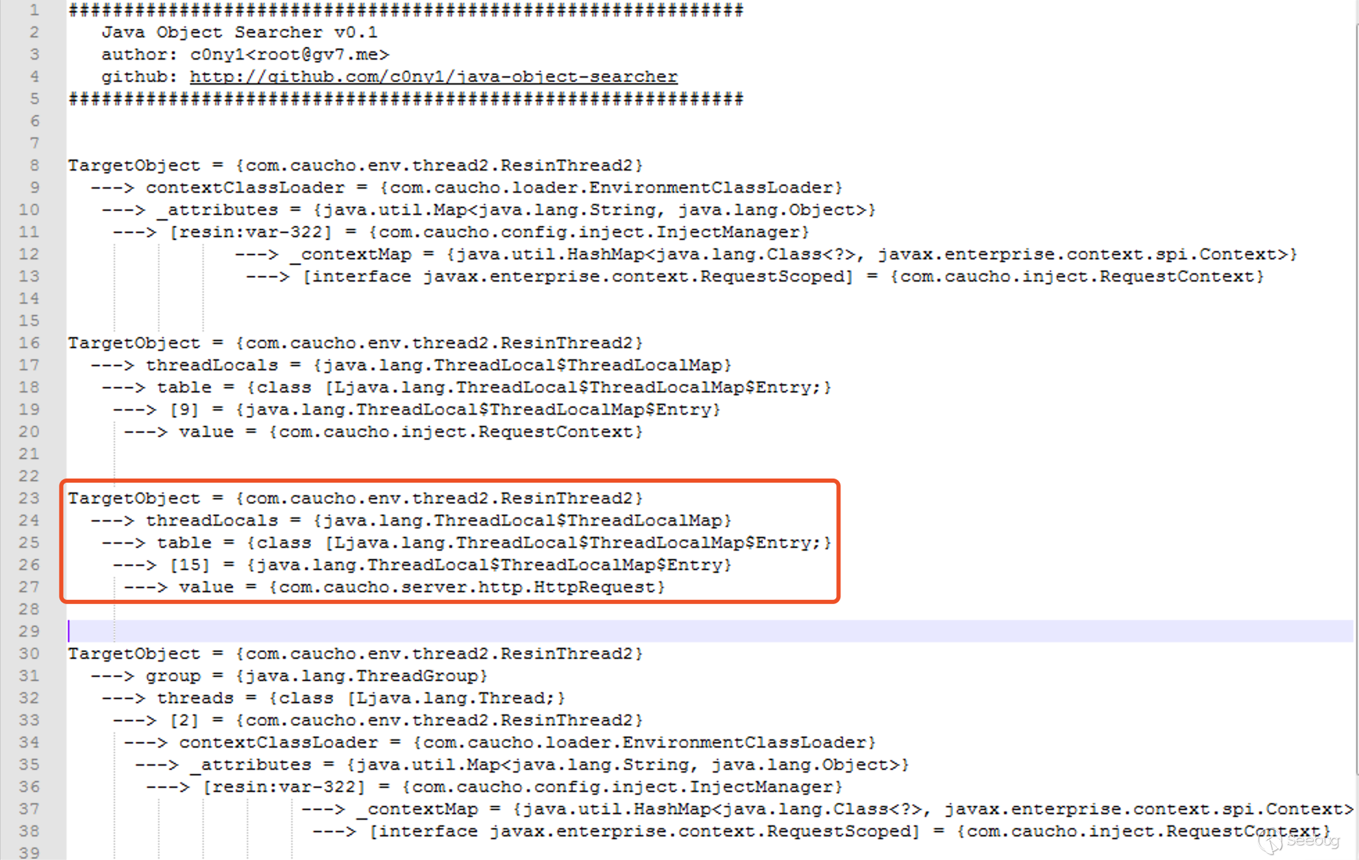 基于以上想法,我設計了一款java內存對象搜索工具java-object-searcher,它可以很方便的幫助我們完成對request對象的搜索,當然不僅僅用于挖掘request。下面以Tomcat7.0.94為例挖掘requst。