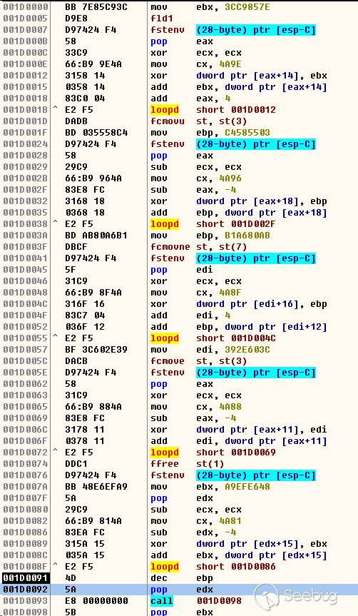 Shellcode的編碼主要有兩種,Shikata ga nai和普通的編碼。Shikata ga nai編碼為常用的一種躲避殺軟檢測的編碼,海蓮花中的shellcode也多采用該編碼。