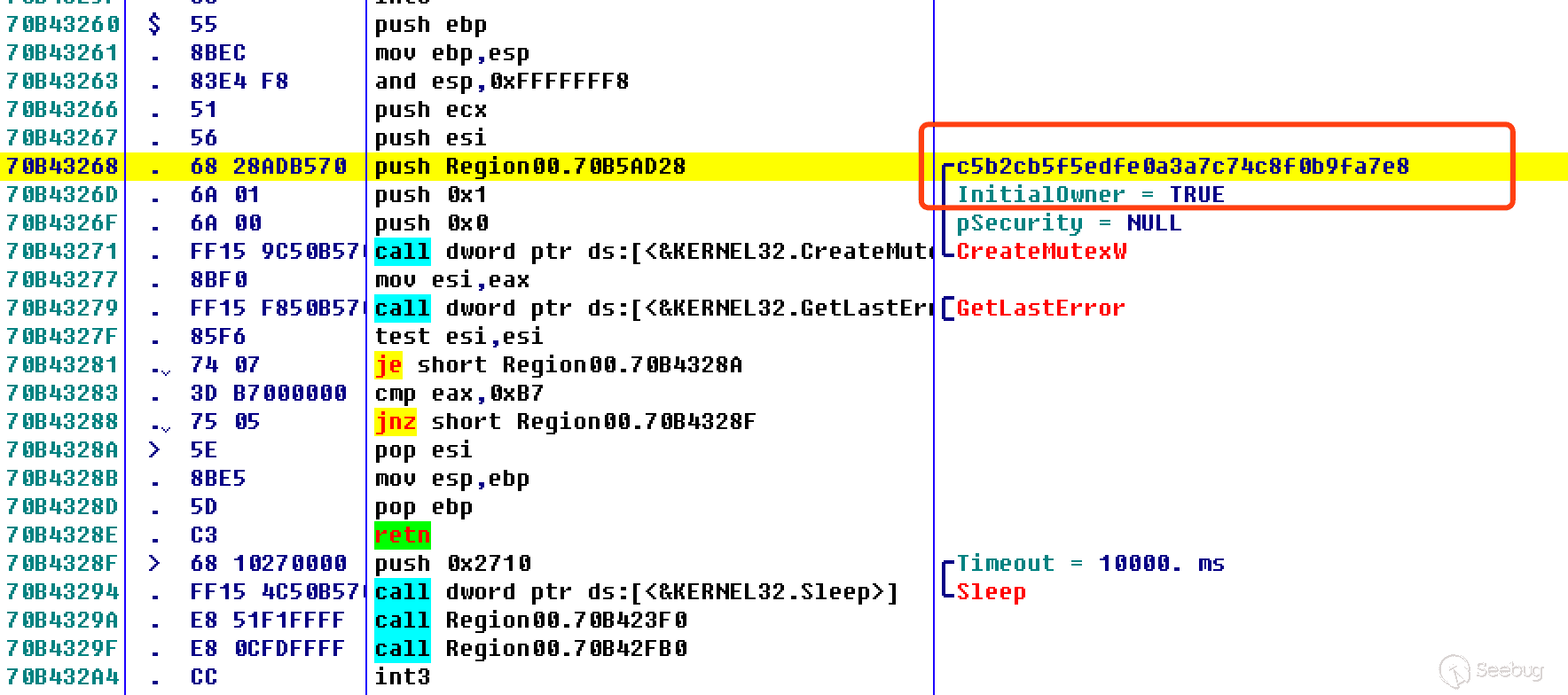 首先創建Mutex 44cbdd8d470e88800e6c32bd9d63d341 防止重復運行: