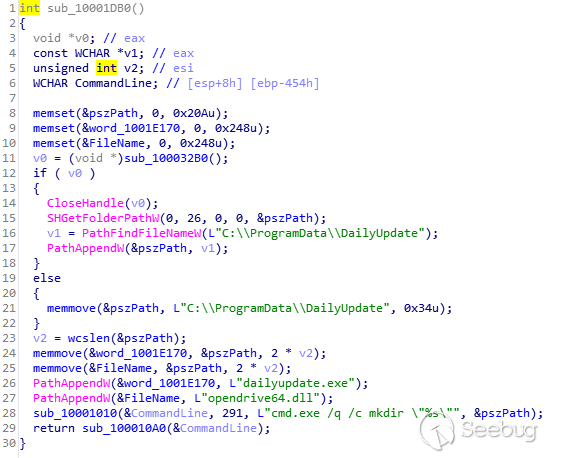 將PE文件釋放到C:\ProgramData\DailyUpdate\opendrive64.dll: