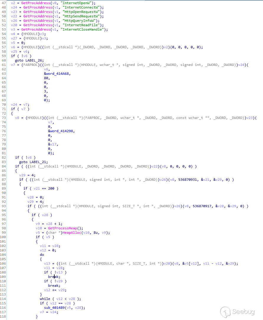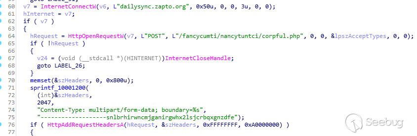 該文件功能與loader相似,主要功能為從dailysync.zapto.org/fancycumti/combidation/scale.jpg上拉取payload并加載,確保payload本身無文件落地,每次木馬加載均需從網絡上拉取paylaod。其功能與loader相同,代碼相似,因此不再詳細分析。