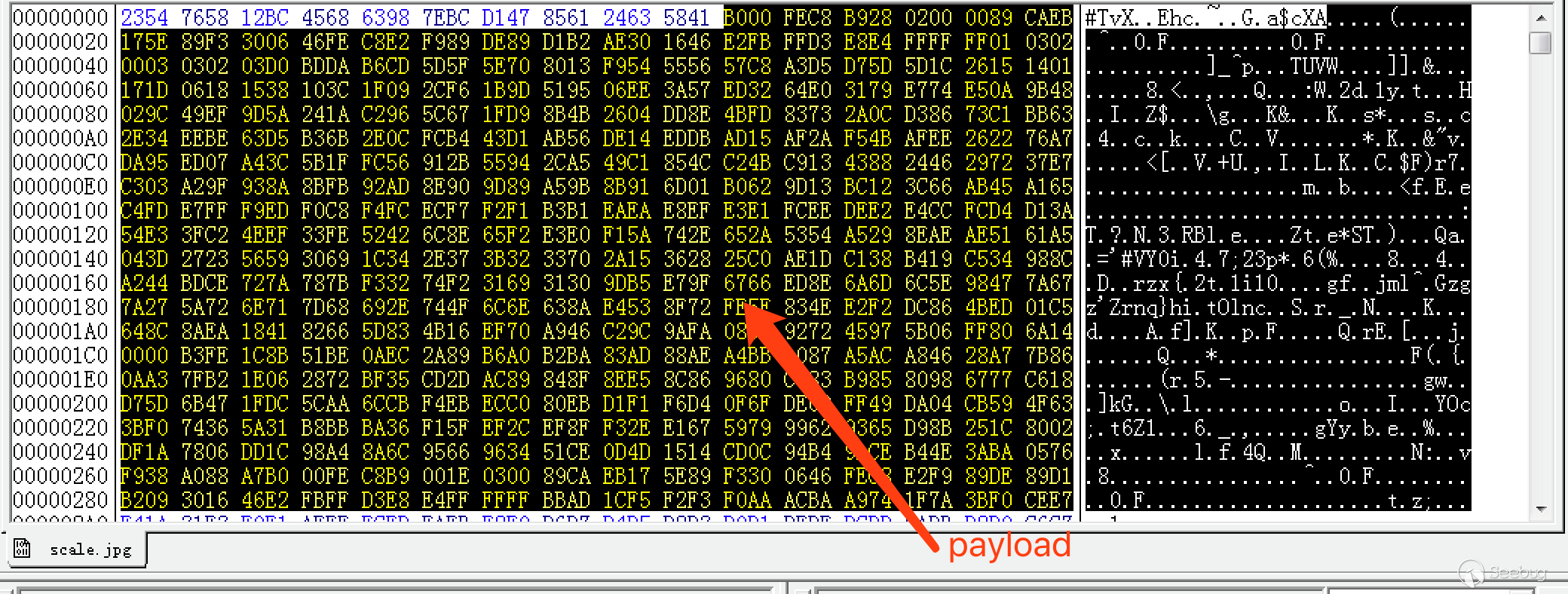 MMCore的一大特色就是把shellcode存放在下載回來的jpg文件中,雖然有些jpg已經完全沒有了jpg的標識: