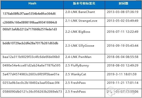 我們羅列一下發現的樣本標簽和版本信息,具體信息如下: