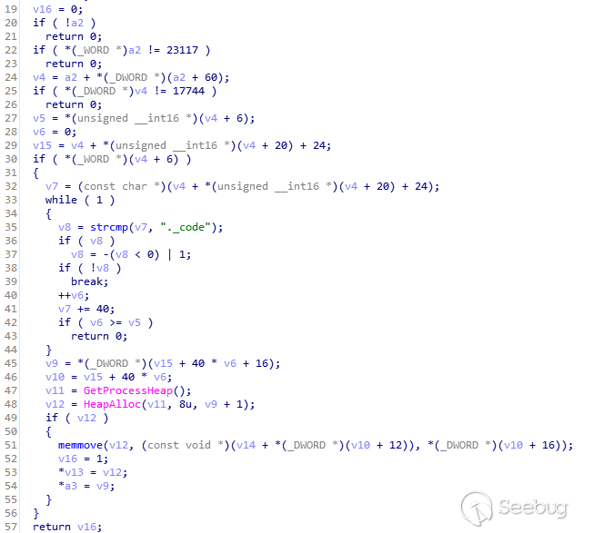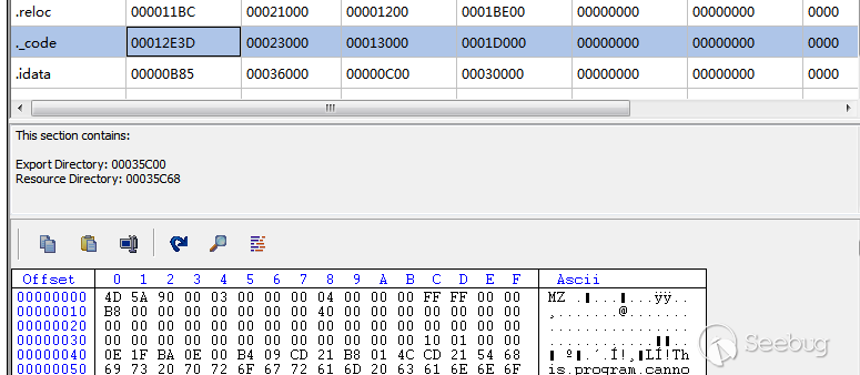 然后進行install,首先定位自身._code區段,該區段存放了一個PE文件: