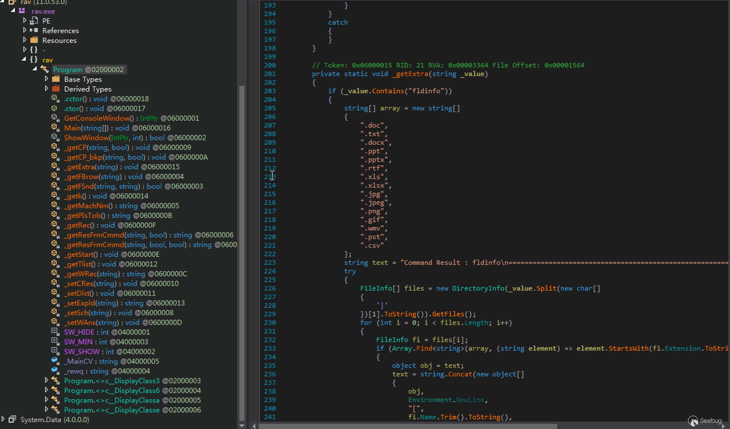 而文檔釋放的惡意文件為一個.net編寫的RAT: