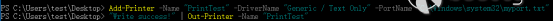 Add-PrinterPort -Name "C:\windows\Temp\myport.txt"
