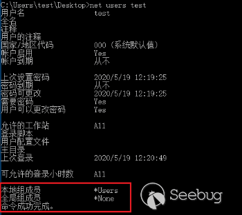 1)在測試系統中創建一個標準用戶test,并使用該標準用戶登錄系統。查看其所屬用戶組,確認其不是管理員用戶組。