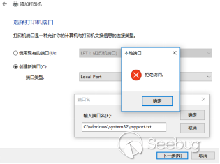 但如果設置打印端口名為C:\Windows\system32\myport.txt,則會失敗。