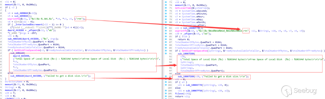 除了ESET文章中提到的Retro后門跟Ramsay后門存在非常多的類似點外,我們發現感染后的文件也存在相當多的類似點,包括使用相類似的字符串、獲取結果都保存在.rtt文件、解密算法的類同、功能類同等等:
