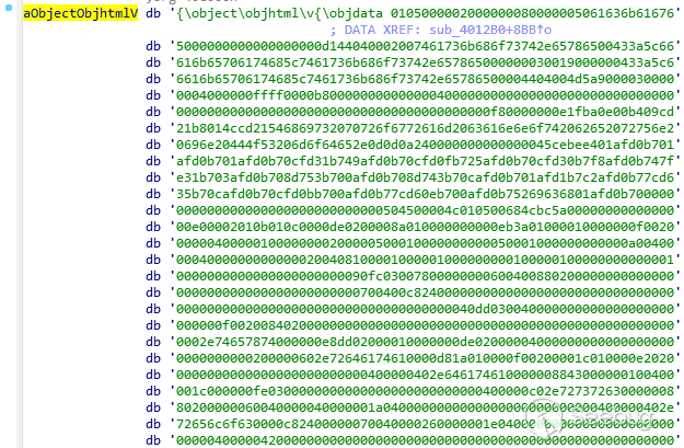 在今年的4月初,我們再次發現了一批帶有CVE-2017-8570漏洞的文檔文件,經過分析研判后,我們發現該批帶有漏洞的文檔跟Retro系列感染后得文檔存在非常多的相似點。因此我們判斷為,該批文檔文件同樣為被感染后的產物,同樣為攻擊物理隔離網絡而生,并且為同一攻擊團伙所有。但是遺憾的是,這次我們并未發現原始的感染器文件。