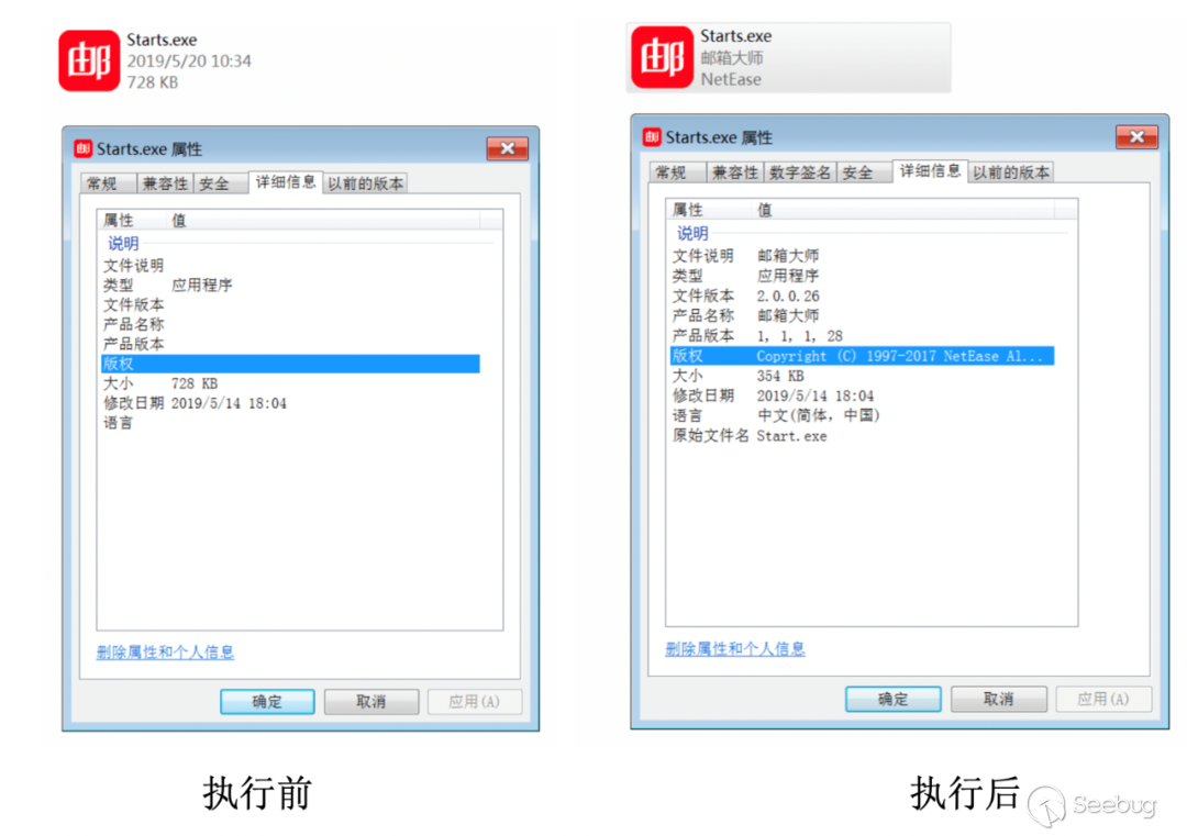 值得注意的是,騰訊安全威脅情報中心在2019年發表的文章(見參考鏈接3),文章中提到的做為攻擊母體的"網易郵箱大師",當時我們認為是通過偽裝正常客戶端的方式,通過水坑來進行初始攻擊。但是從目前掌握的信息來推測,該文件可能同樣為感染后的產物: