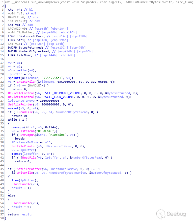 2.不斷檢測可移動磁盤,將CommCache_{rand}.zip內容直接以讀寫扇區的方式寫入磁盤偏移1000000000處,并以HDdE&mE作為標記: