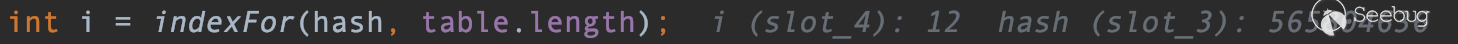 int i = indexFor(hash, table.length);