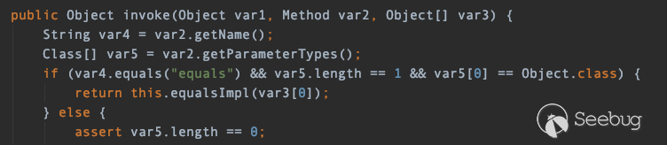 在這里我們可以看到有這么一行代碼var8 = var5.invoke(var1);這里就會調用TemplatesImpl.newTransformer()從而實例化惡意類,這里的var1我們清楚是我們傳遞進來的TemplatesImpl對象,但是var5的結果是怎么來的還需要分析一下。