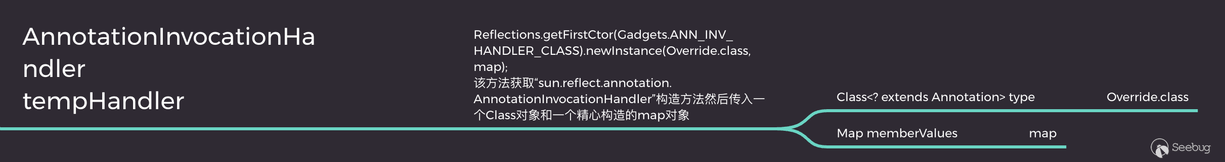 那怎么才能讓兩個連類型都不相同的對象通過運算卻能得出一樣的hash值呢?接下載關鍵點就來了,也就是我們為什么生成Proxy對像時要傳入AnnotationInvocationHandler對象。