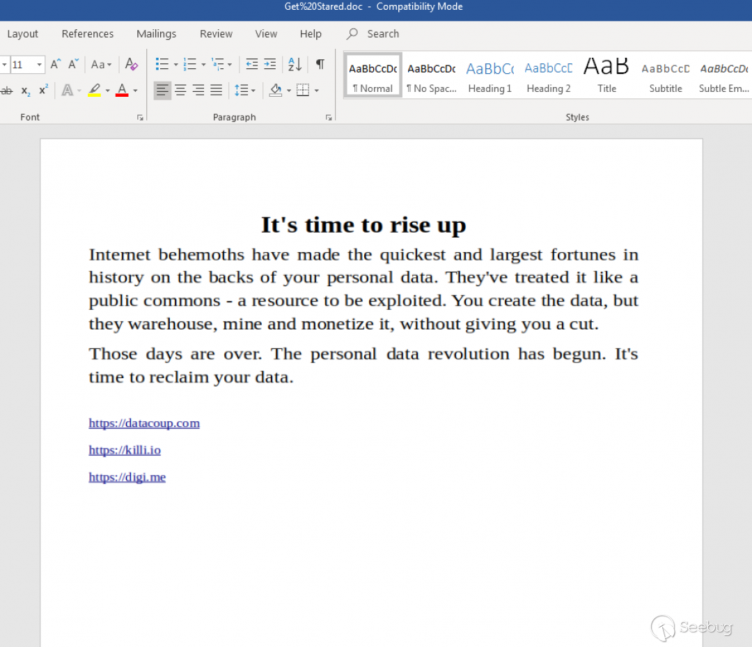 同日,我們在URL上的同一域中找到了了另一個托管文檔網址:hxxps://documentsharing.space/files/FutureBuild.doc?clientEmail =