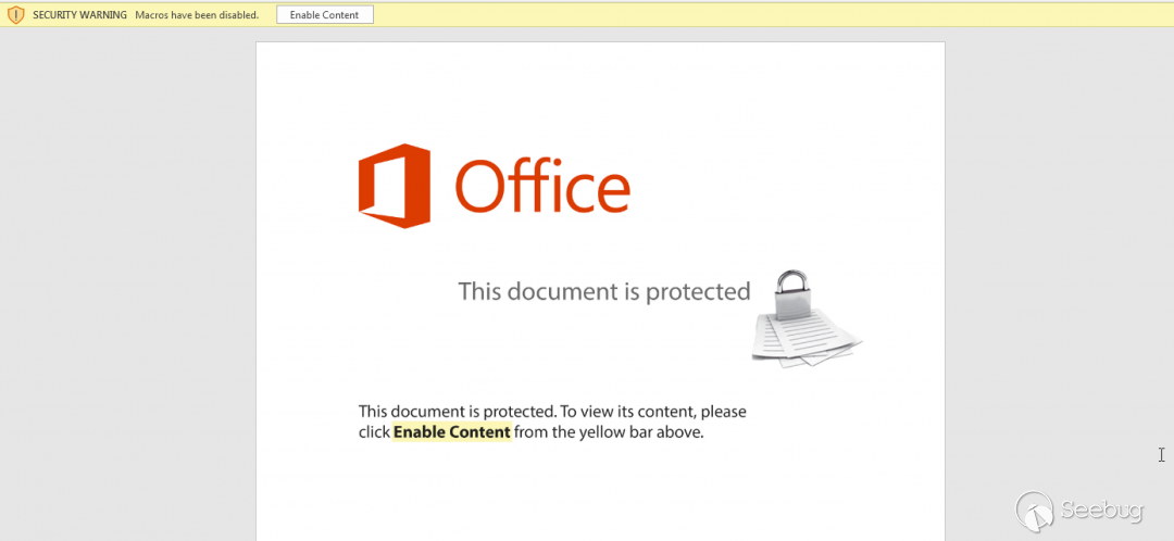打開宏的文檔時,它會顯示一條消息,其要求用戶啟用宏以查看內容,如下圖所示: