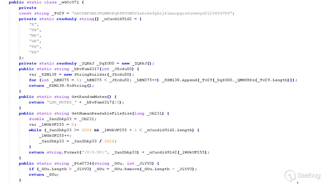 這些功能與QuasarRAT中的StringHelper功能類似。但是,在這種情況下,.NET二進制文件中不會調用其中的大多數功能。