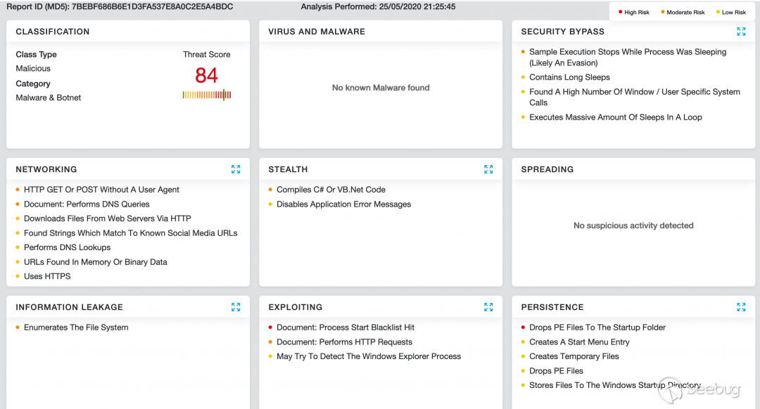 除了檢測沙箱外,Zscaler的多層云安全平臺還可以檢測各個級別的指標,如下所示: Win32.RAT.ShellReset