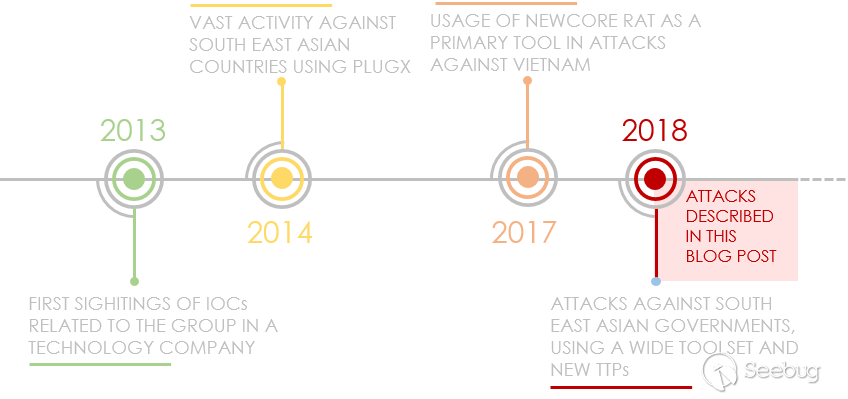 2018年,東南亞地區多個國家(包括越南、泰國和老撾)的政府組織使用各種工具和新的TTP進行了攻擊。其中包括使用Royal Road構建器,NewCore RAT惡意軟件的開發版本以及其他未報告的植入程序。自2019年10月以來,這已經成為卡巴斯基威脅情報門戶網站報告的重點,也是本文的主題。