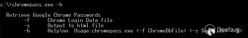 - ChromePass:專有工具,可從基于Chromium的瀏覽器數據庫中竊取保存的密碼。解析的數據庫會輸出一個HTML文檔,文檔中包含一個帶有URL的表以及相應的被盜用戶名和密碼信息。具體操作如圖所示: