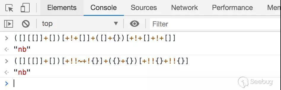 兩段js代碼都輸出了字符串"nb",下面來分析下原因.
