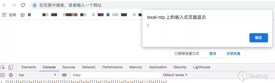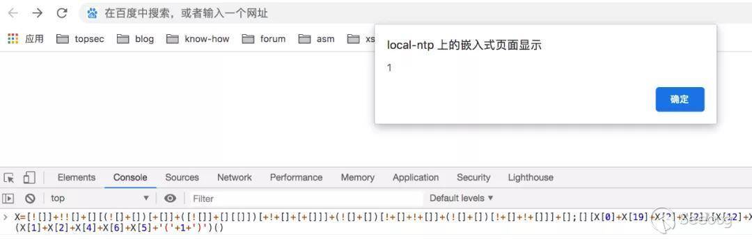 在控制臺執行上面的JS,瀏覽器會彈出一個對話框內容是1。