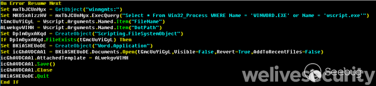 該模塊的VBScript版本與.NET類似。但區別在與它沒有在現有文檔中插入惡意宏,而是插入了遠程模板引用。