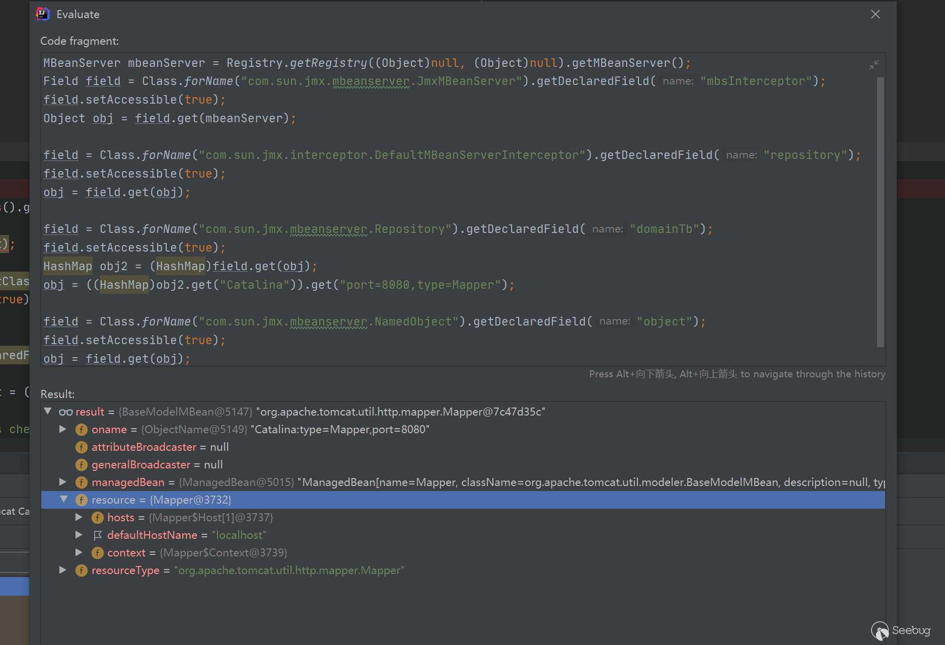 field = Class.forName("org.apache.tomcat.util.modeler.BaseModelMBean").getDeclaredField("resource");