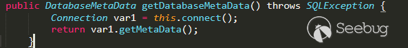 從上圖可以看出getDatabaseMetaData對象中也調用了connect方法,connect方法中會加載dataSource指向的地址,被加載遠程Reference對象,造成JNDI方式的遠程代碼執行。