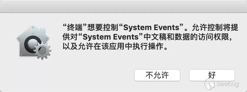 由于添加login item時會通過『System Events』進行操作,會彈出相應的權限申請提示用戶,這讓本就要求苛刻的漏洞利用鏈更加雪上加霜,成功率大大降低。由此看來,此方法還是不可用的。