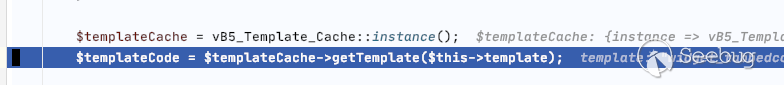 $templateCode = $templateCache->getTemplate($this->template);
