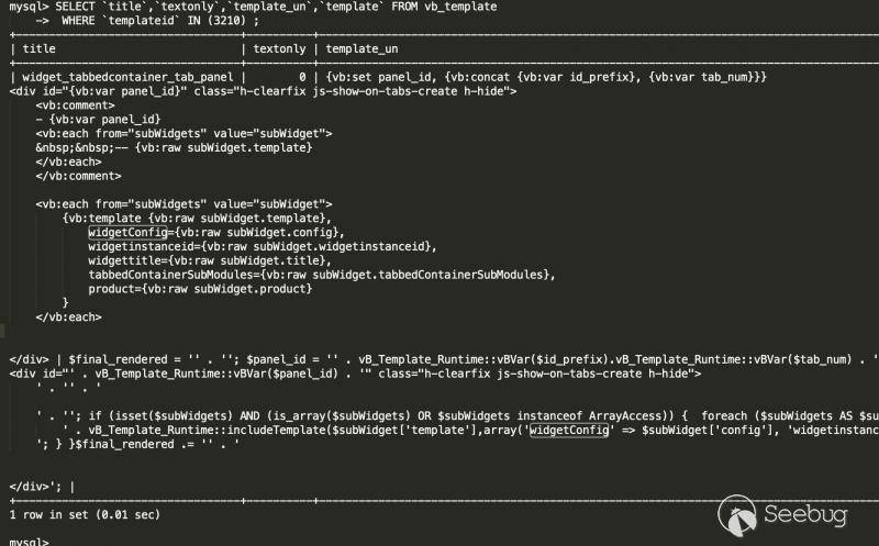 vBulletin 代碼不開源使得環境搭建異常復雜,之前的p8361/vbulletin-cve-2015-7808 docker 環境為vBulletin v5.1.5版本太老了,數據庫中沒有widget_tabbedcontainer_tab_panel模板,因此又在其他地方找到了符合漏洞版本的源代碼。 具體的搭建細節可以參照 https://www.secshi.com/19016.html