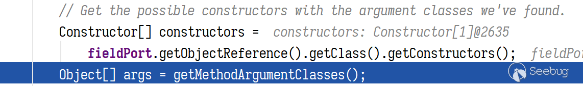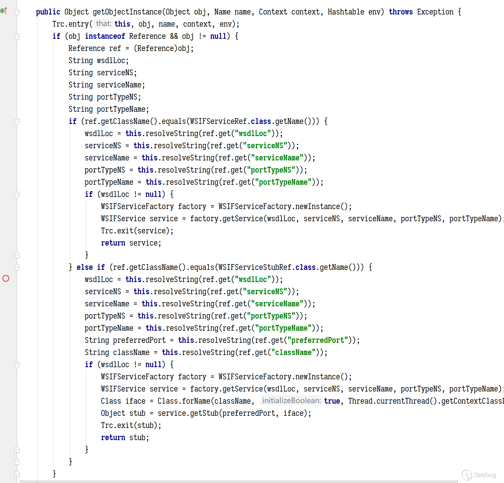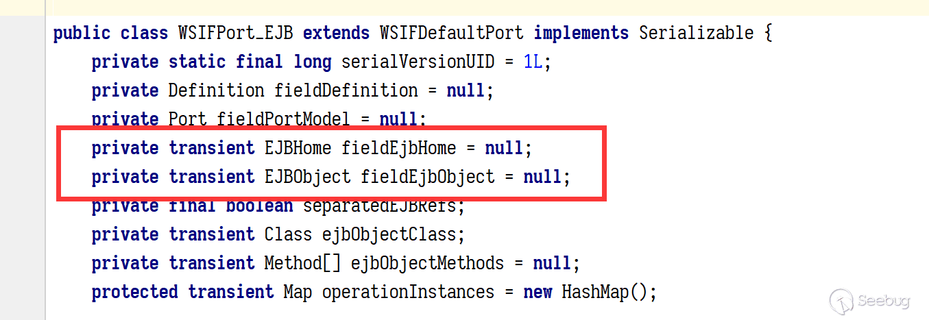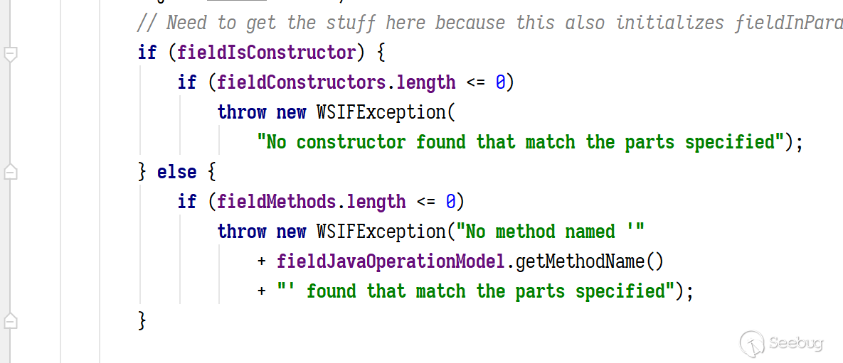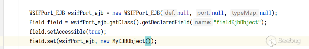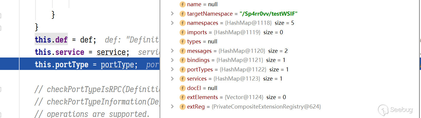 這個類有個叫 fieldObjectReference 的字段很關鍵,后面我們會看到它就是我們在 WSDL 中 <java:address > 這個元素中指定的ClassName的實例對象,也是最終執行方法的對象。