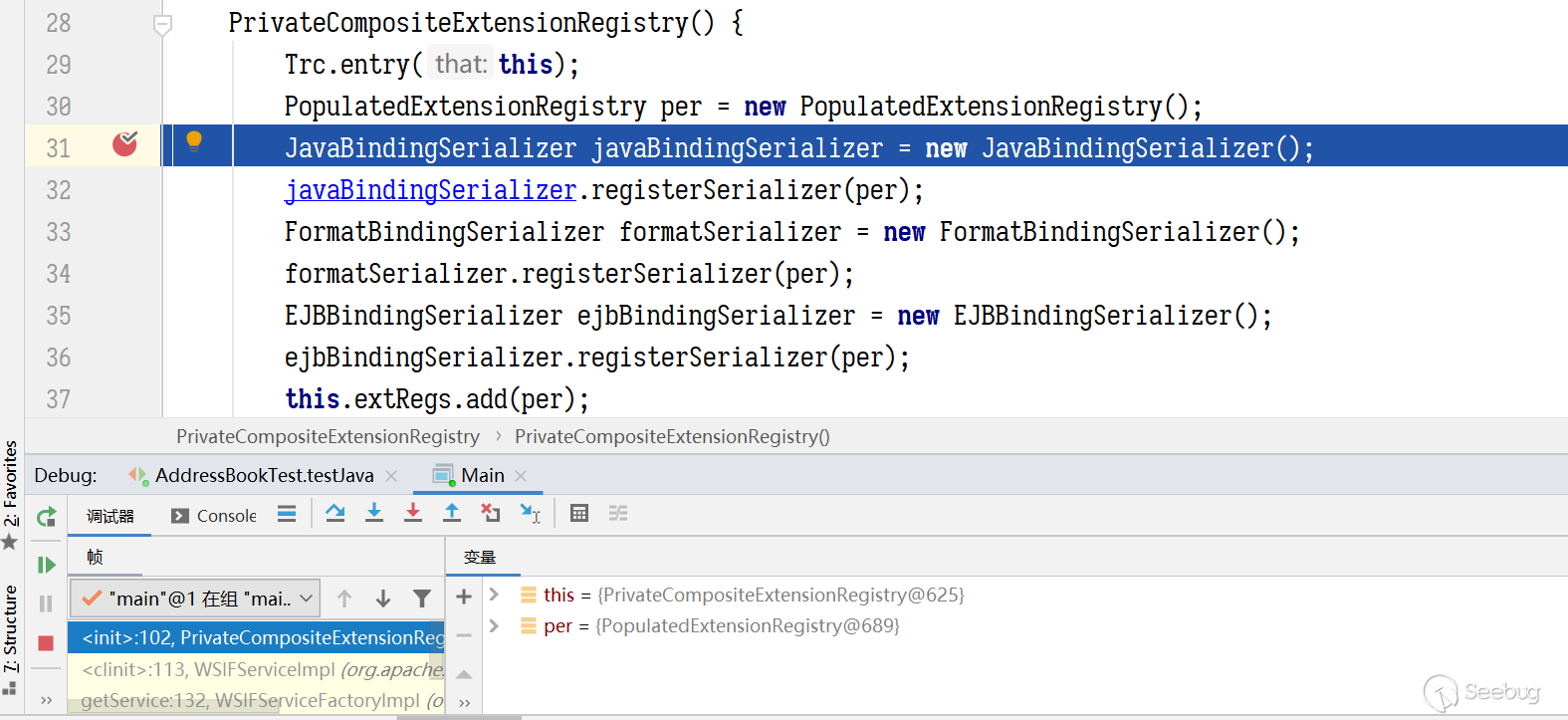 第二步實例化 WSIFService,會往擴展注冊中心注冊幾個拓展元素的解析器,其中 JavaBindingSerializer 就是解析 WSDL 中 java 這個命名空間元素的: