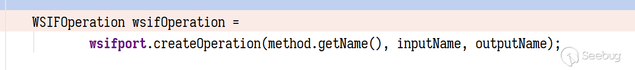 選定 WSDL 中 portType 的這個符合名字和參數條件的 operation 后,接著往下,會根據這個operation的名字、參數名和返回值名由 WSIFPort 的實現類創建對應的 WSIFOperation