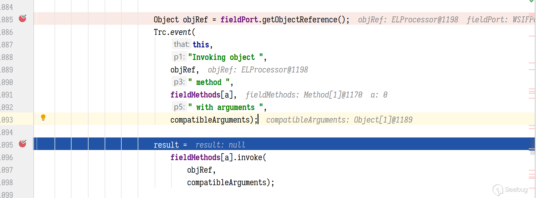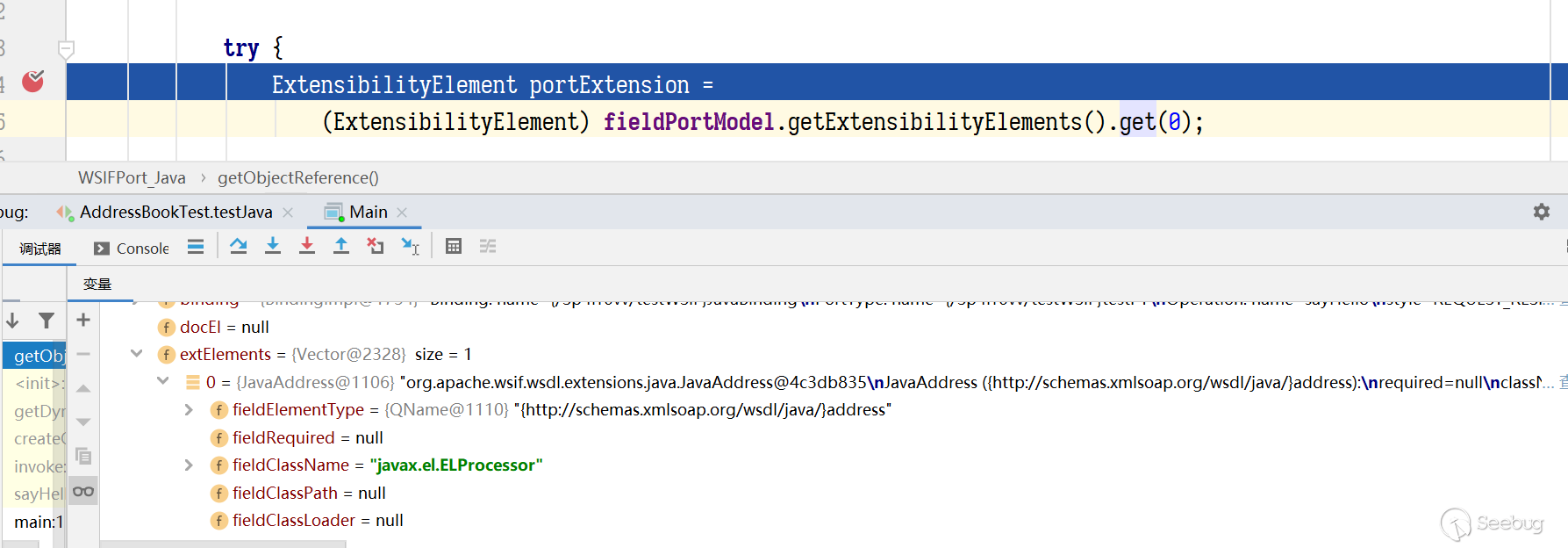 跟進斷點這行,會看到 WSIF 會實例化我們在 WSDL 中 <java:address className="javax.el.ELProcessor"/> 這個標簽那里指定的className,然后返回其所有的方法