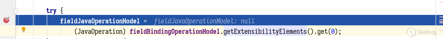 接下來,是根據上面所說的,在實例化之前,篩選出的 wsdl 的 binding 中的那個 operation,將其中的 java 擴展元素賦值給 fieldJavaOperationModel 字段