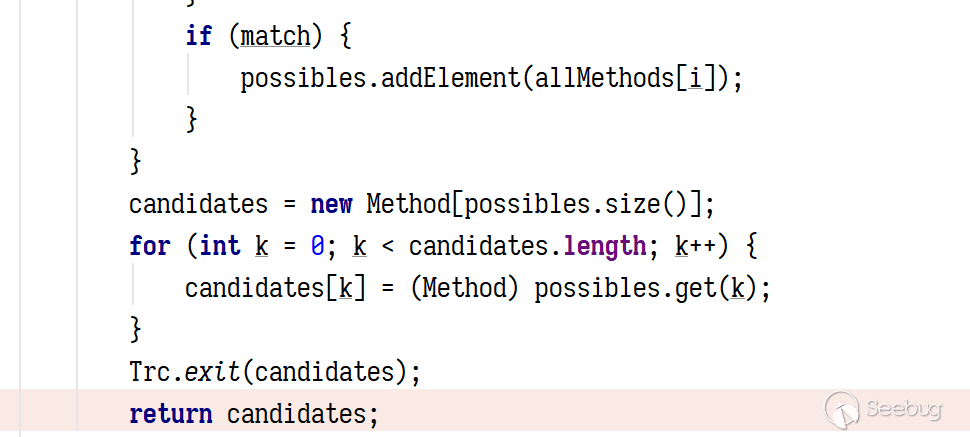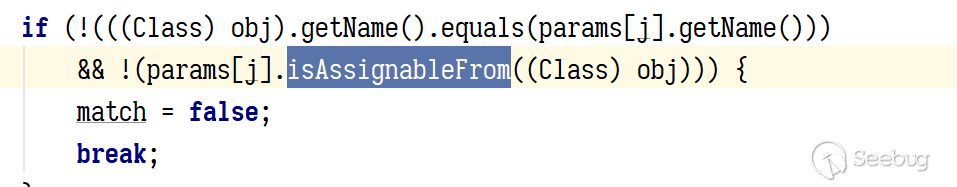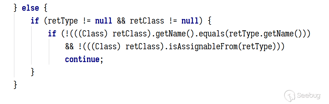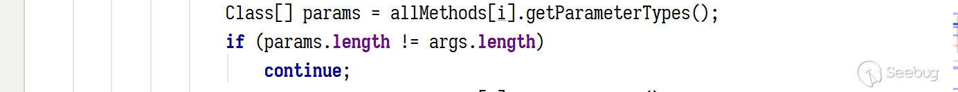 如果參數長度一致,就判斷類型,如果遇到一個不一致的類型就繼續遍歷下一個 operation 如果完全一致就立刻返回這個 operation ,如果 operation 中定義的參數類型,是正在調用的方法的參數類型的子類的話也行,但是并沒有限制返回值。