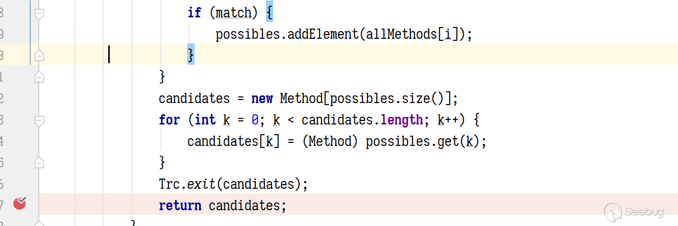 名字一致后,找參數,先是如果二者的參數都為 0 的話,就返回這個 operation 了,有參數,判斷參數長度,不一致就繼續遍歷下一個operation
